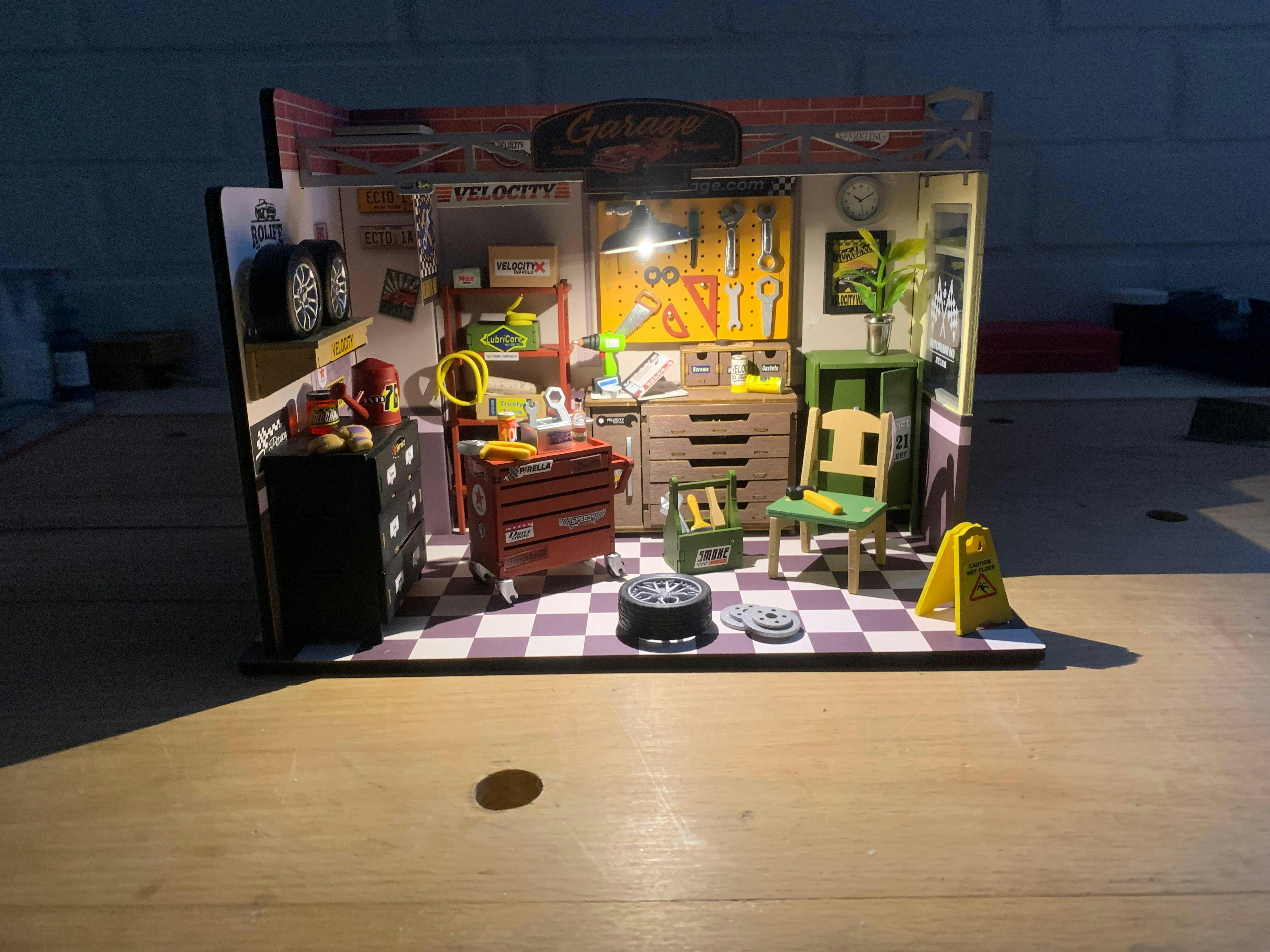 De garage is heel leuk om te maken. Zitten wel erg kleine onderdeeltjes bij, maar dat maak het nog leuker om het goed te doen.