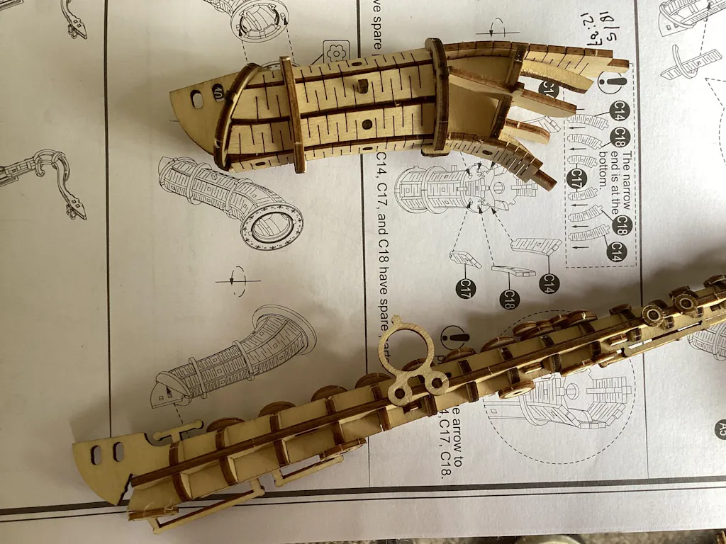 Echt voor een gevorderde bouwer. Vooral de buitenkant van de hoorn is erg lastig goed in vorm te buigen zonder het kapot te maken. Ook veel hele kleine onderdelen. Het resultaat is, eenmaal afgebouwd echter zeer de moeite waard.